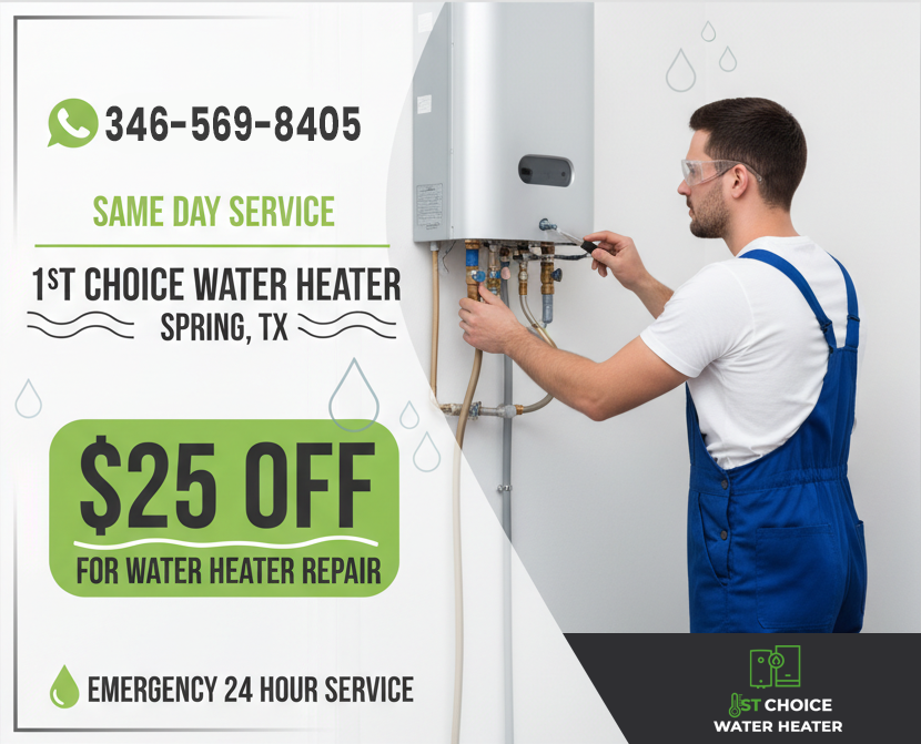 During sudden shutdowns or unexpected leaks, 1st Choice Water Heater Spring TX offers immediate and contingency responses shaped by structured readiness and methodical action. Our inspection provisions, practical upkeep steps and careful checkup routines help stop breakdowns long before they interrupt everyday life while our repairmen cater to quick fixing that keeps habitations comfortable.